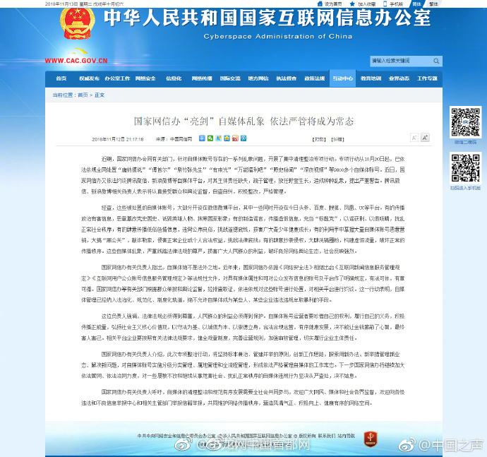 常熟网络公司讯: 11.13日,在网络和收音机电台等媒体平台上传的沸沸扬扬的,关于网信办处置9800多个自媒体帐号,网信办公布的名单里面,半个月以来的时间很多自媒体平台都被处置了,包括11月12日晚,国家网信办约谈腾讯微信、新浪微博等自媒体平台,对其提出的严重警告,主要原因是没有实名认证,主体缺失,疏于管理,发布违反国家法律的内容等现象。